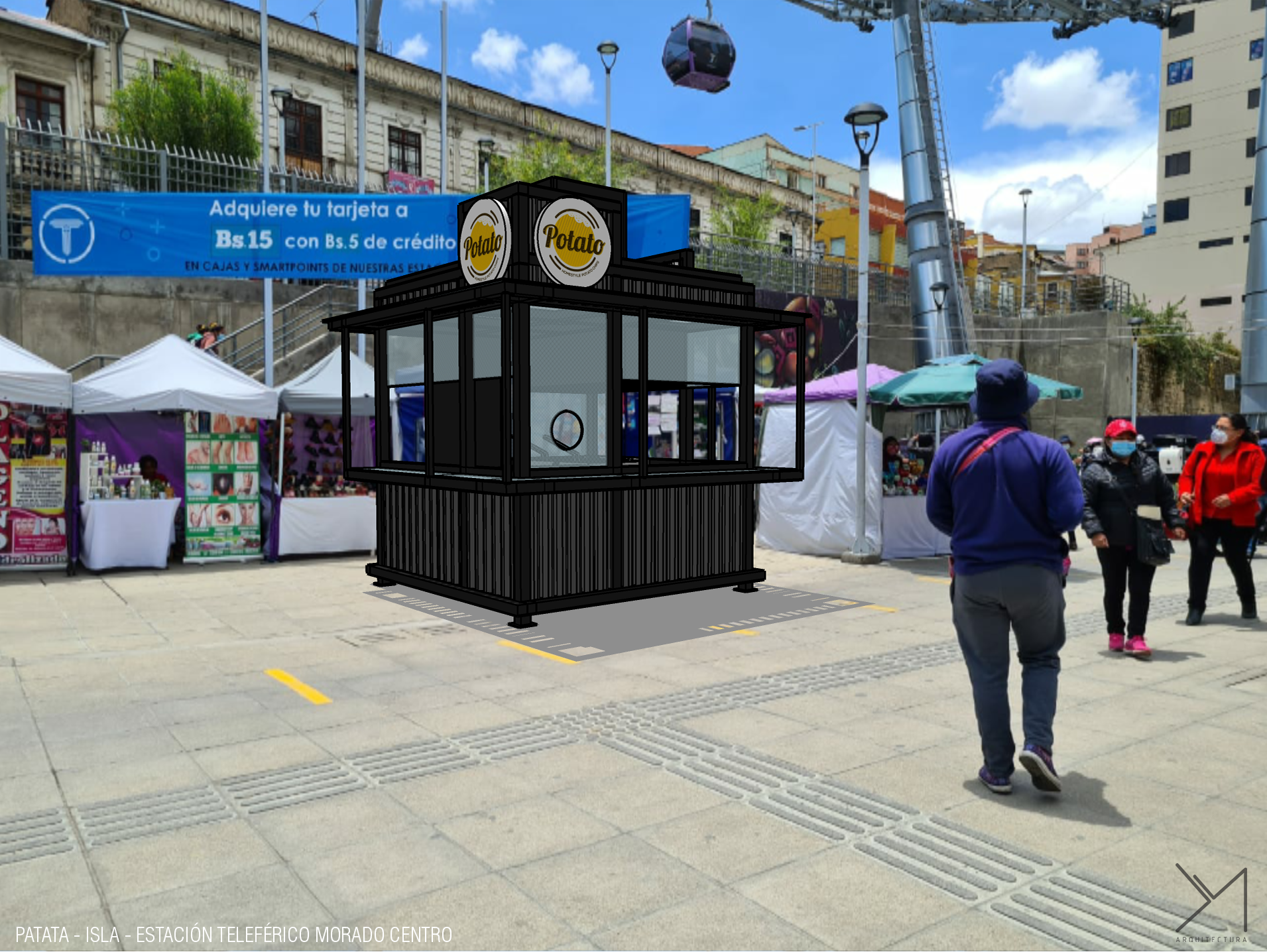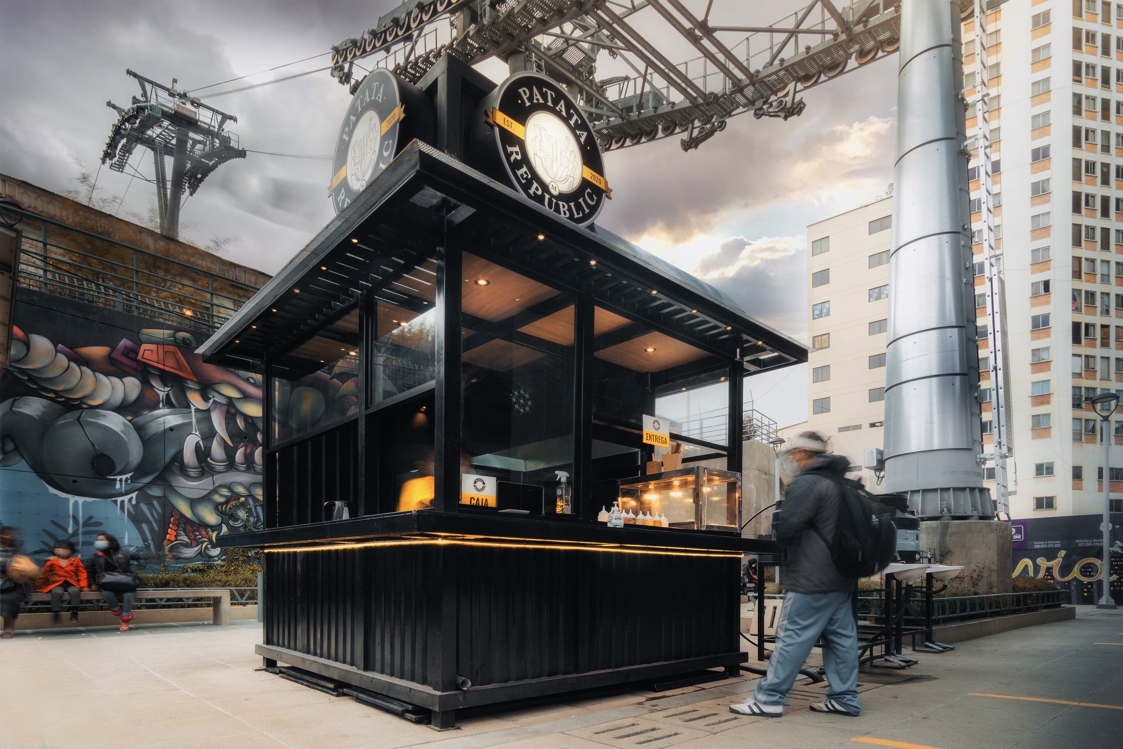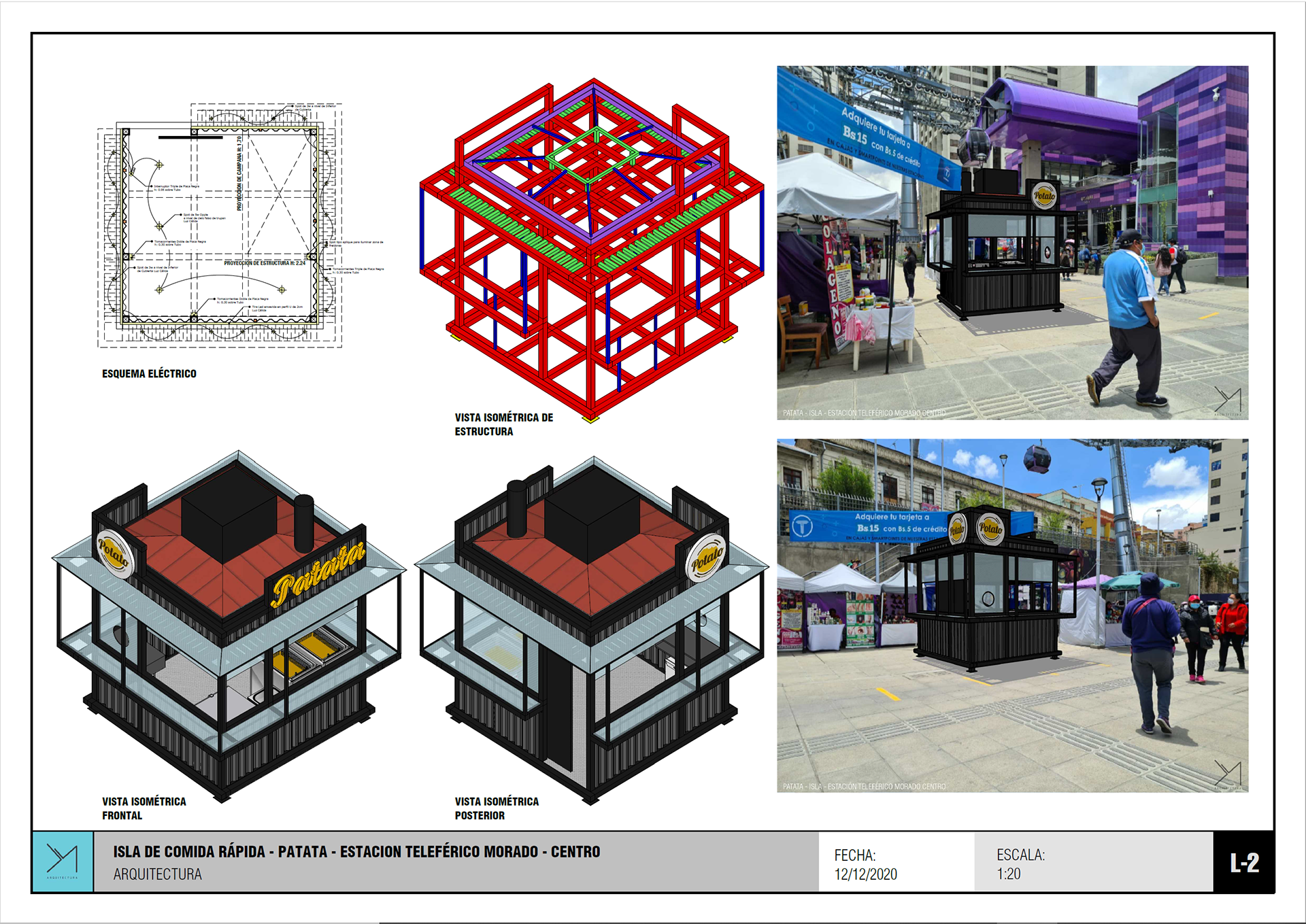 Isla de comida rápida diseñada en dos días y seleccionada entre mas de 60 opciones de ideas negocios para su instalación en predios de la estación Faro Murillo del teleférico morado.