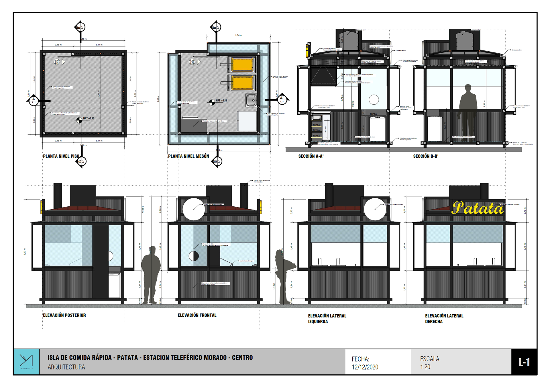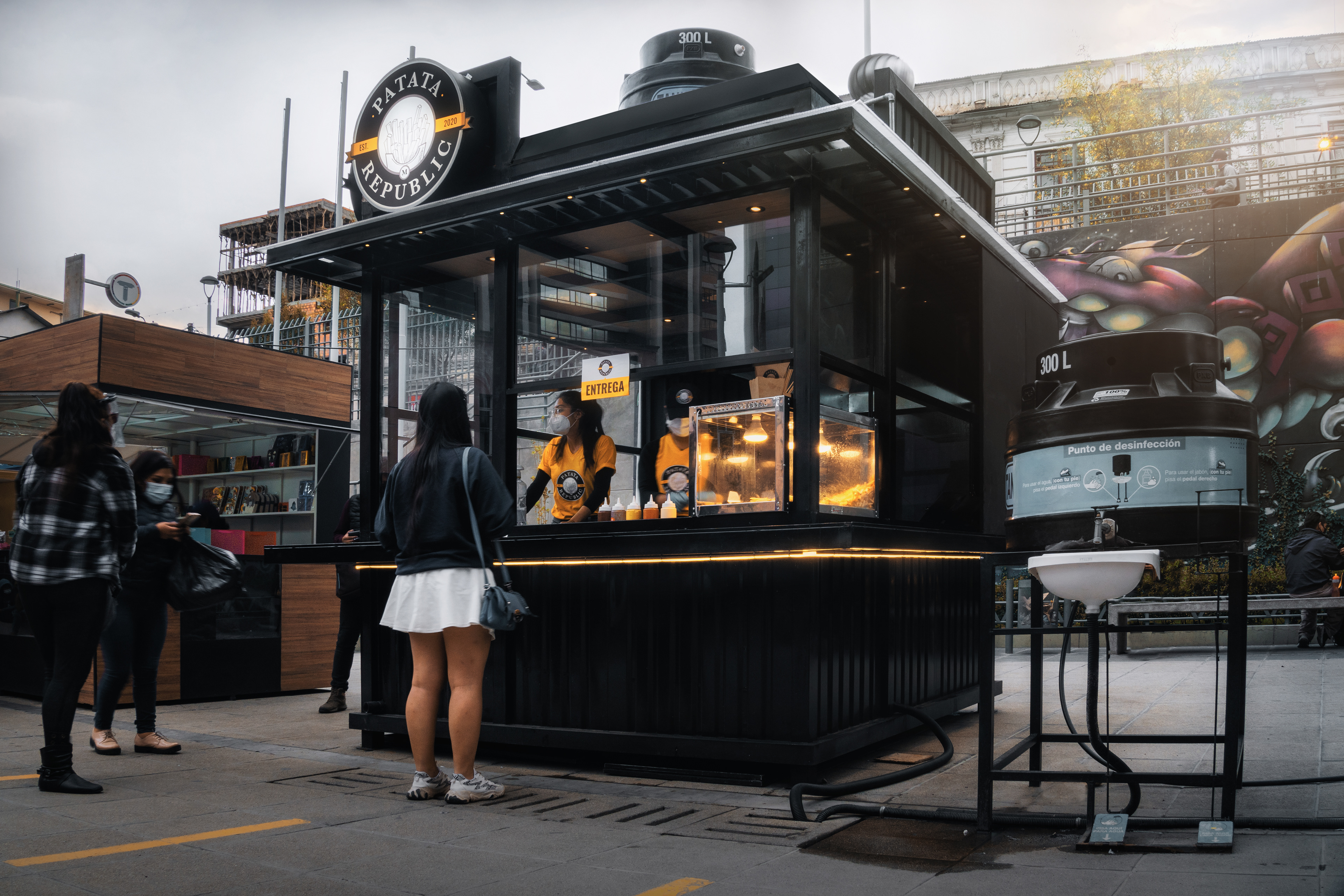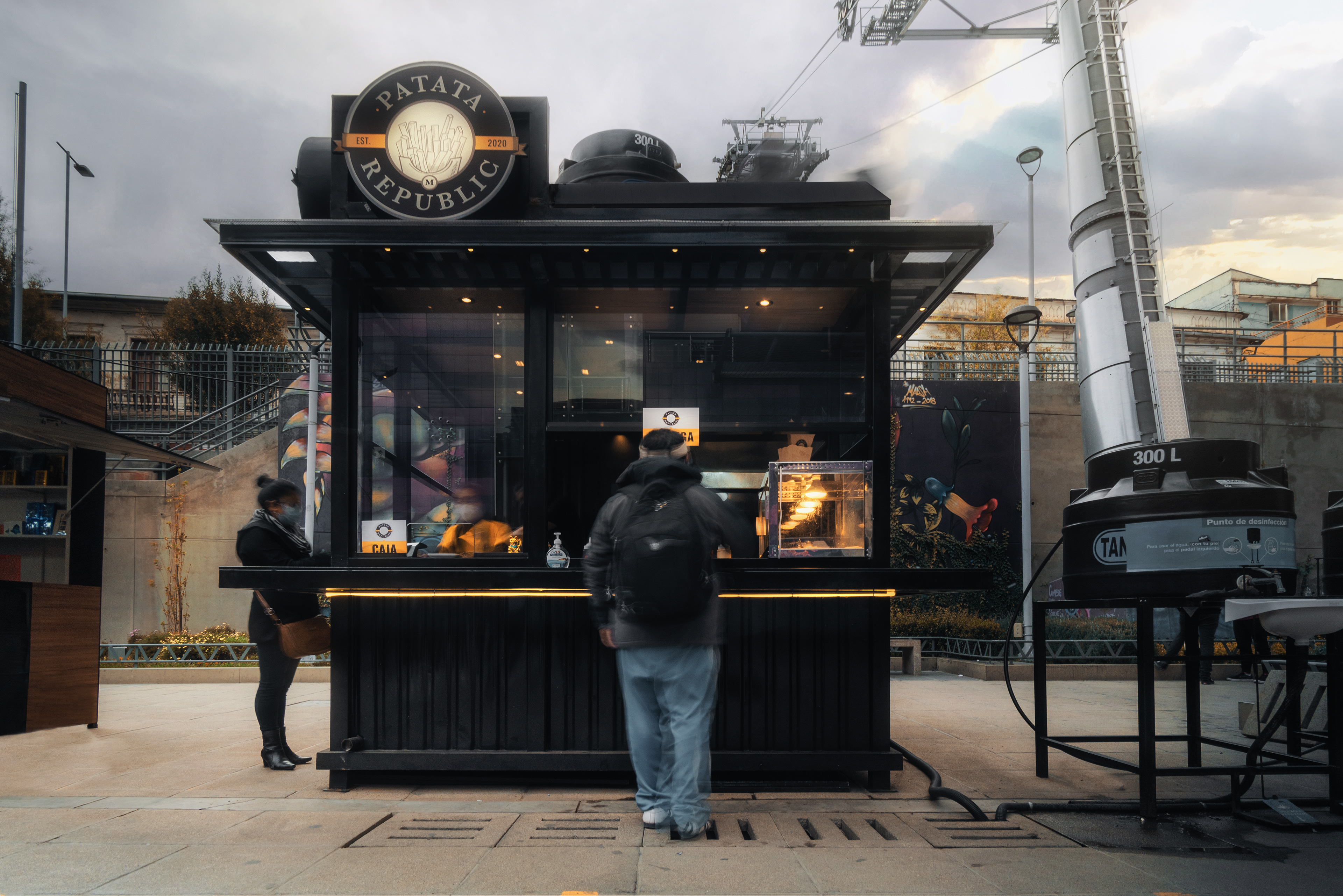 Isla de comida rápida diseñada en dos días y seleccionada entre mas de 60 opciones de ideas negocios para su instalación en predios de la estación Faro Murillo del teleférico morado.