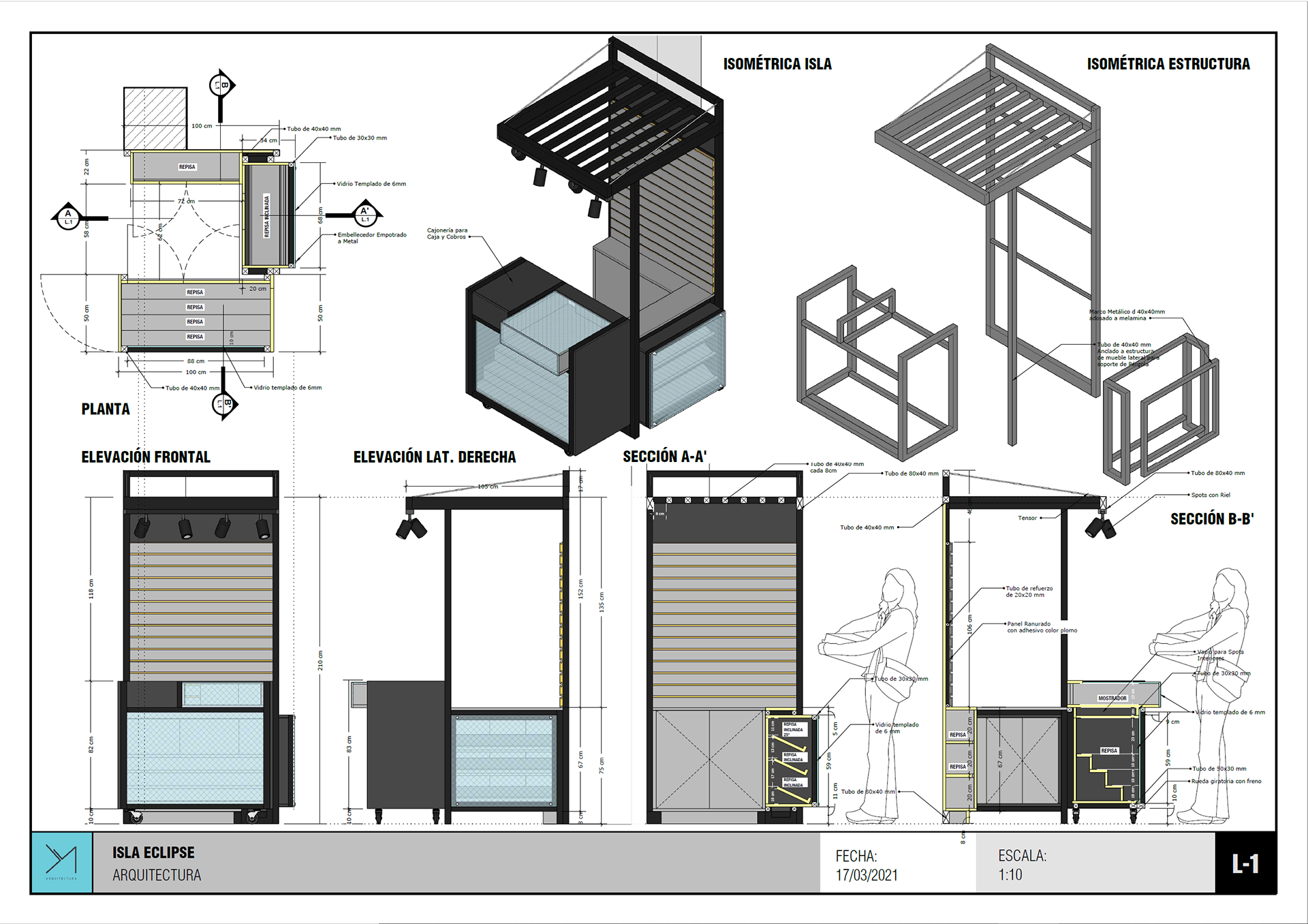 Diseño de Isla comercial para ECLIPSE una empresa importadora de Cosméticos y Ropa Interior de Marca.